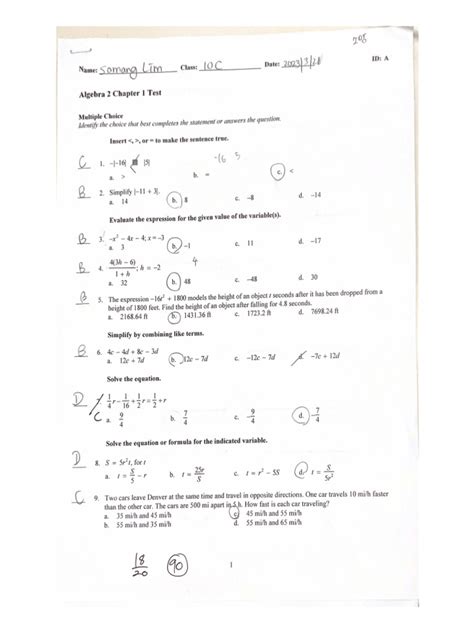 Download pearson algebra 2 chapter 1 test answers PDF
